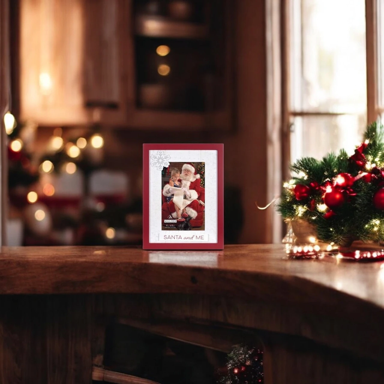 Capture the magic of meeting Santa with this “Santa and Me” 4×6 rustic frame. Designed with a charming birch background and a festive silver snowflake accent, this frame perfectly holds a 4×6 photo of your child’s unforgettable Christmas moment.