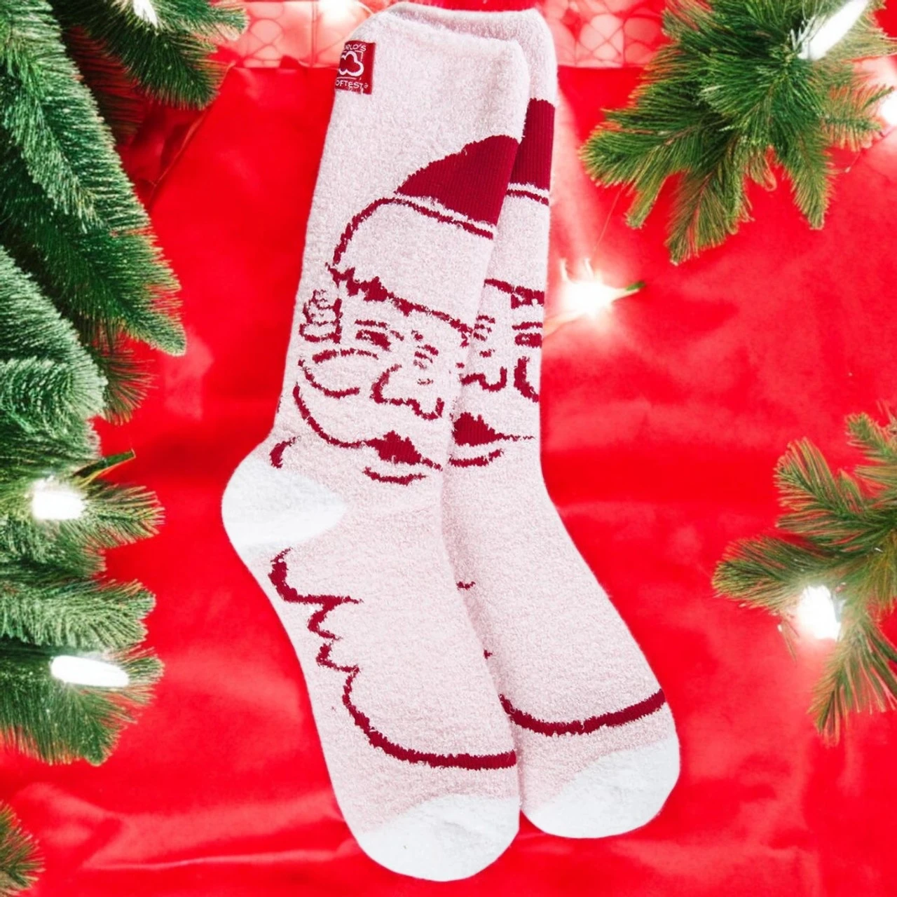 Step into holiday cheer with the Santa Cozy Crew Socks! Featuring a charming, smiling Santa design in red and white on a soft pink background, these socks add festive fun to any winter day.