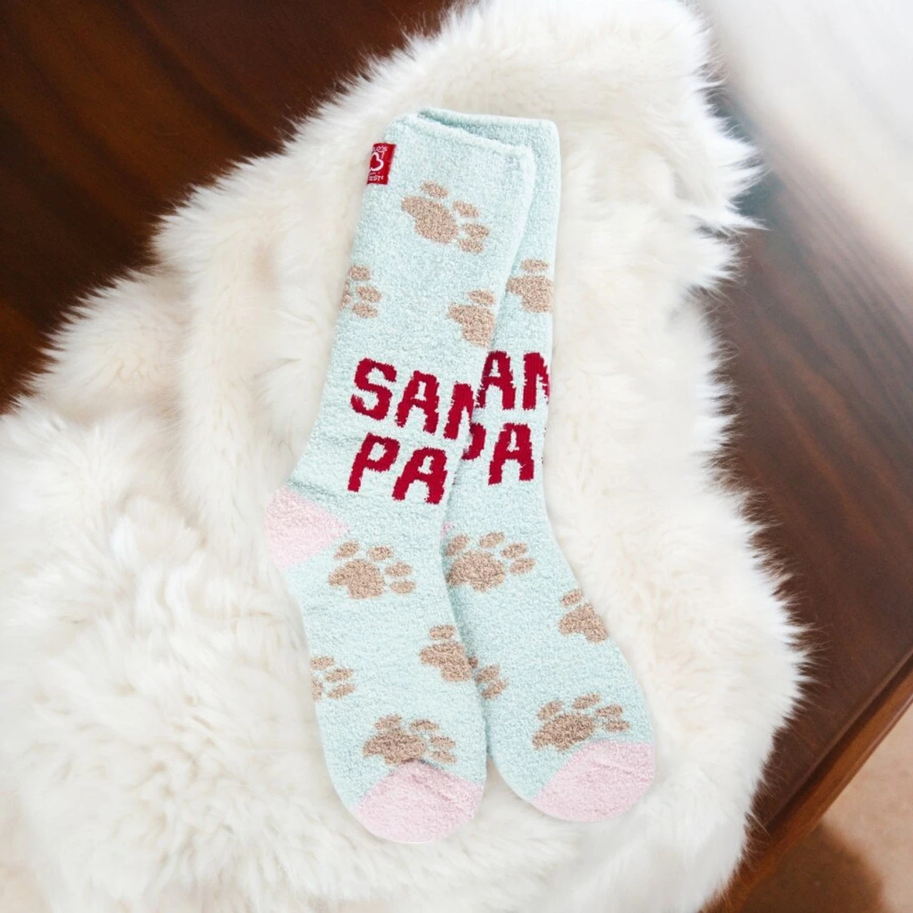 Get into the holiday spirit with our Santa Paws Cozy Crew Socks! These delightful socks are adorned with cute paw prints and the playful “Santa Paws” text, crafted in a soft and warm fabric.
