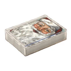Get into the festive spirit with our Santa Playing Cards – a delightful 54-card deck adorned with hand-painted Christmas and Santa-themed designs, each meticulously replicated from original artwork on burlap canvas, lending the art a distinct depth and texture. Housed in a protective acrylic case, these Santa playing cards make for an excellent stocking stuffer or thoughtful seasonal gift. Add a touch of Christmas magic to your game nights this holiday season!