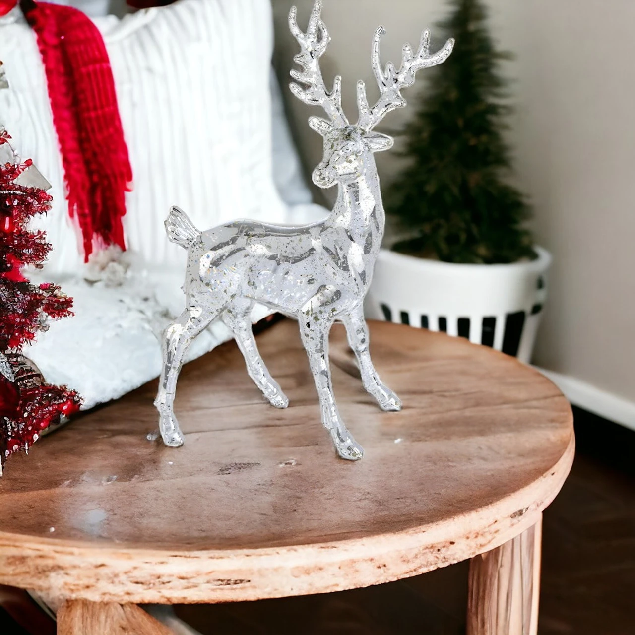 Add a dazzle of winter magic to your decor with our Sparkling Silver Reindeer Christmas Figurine. This beautiful piece captures the essence of a winter wonderland. Its majestic pose and intricately designed antlers reflect the holiday spirit perfectly.