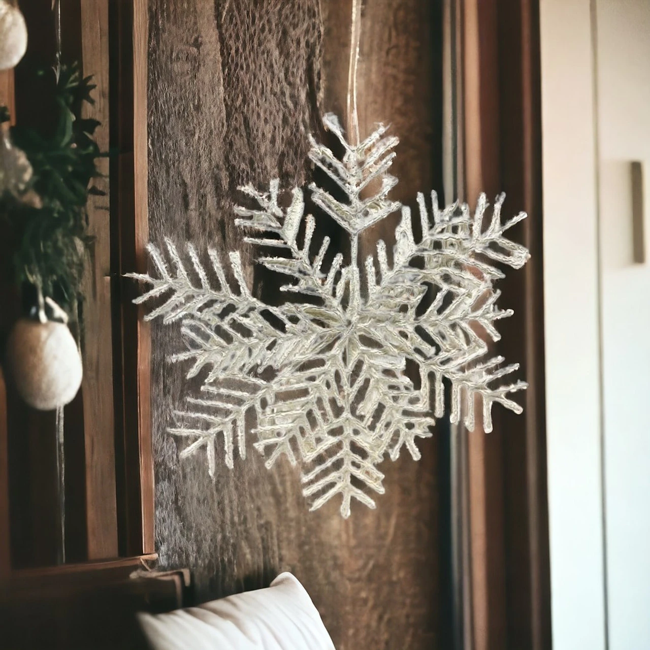 Ideal for holiday decorating, it brings a whimsical charm to any room. Easy to hang and lightweight, this snowflake is a delightful addition to your seasonal decor.