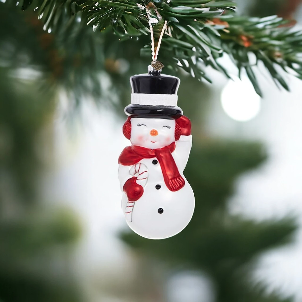 Made from high-quality materials and hand-painted with intricate details, this snowman is perfect for your Christmas tree or as a delightful gift. Celebrate the season with this whimsical and joyful ornament.