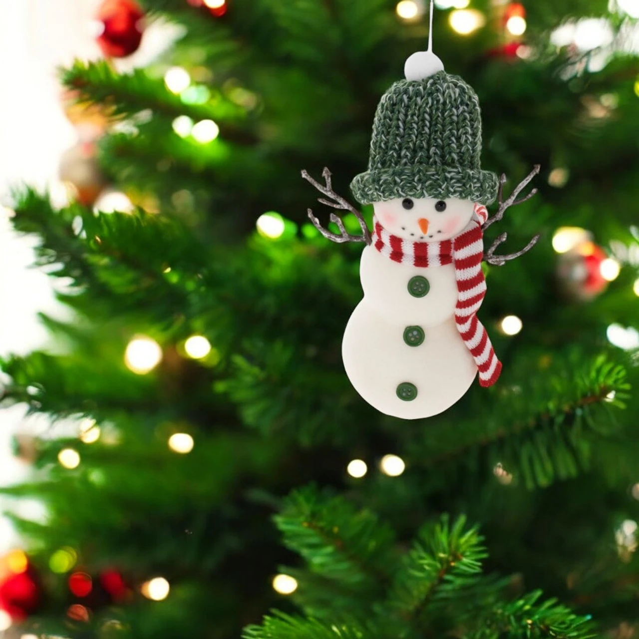Made from soft polyester, this ornament adds a playful and festive touch to your Christmas tree. Perfect for adding a cheerful wintery feel to your holiday decor, this snowman will be a favorite for seasons to come!