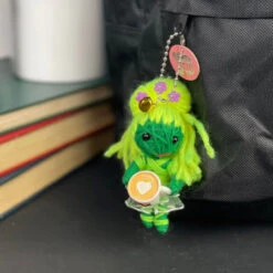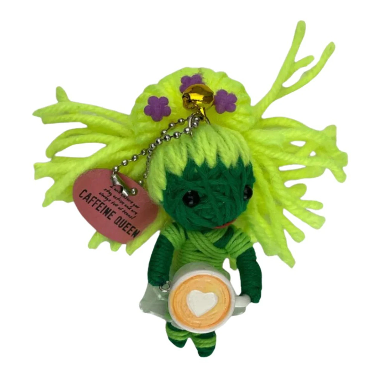 Stay energized with the Voodoo Doll – Caffeine Queen Charm! This fun and quirky doll features bright green yarn hair, a playful floral headband, and a coffee cup accessory—perfect for coffee lovers and those who are always on the go.