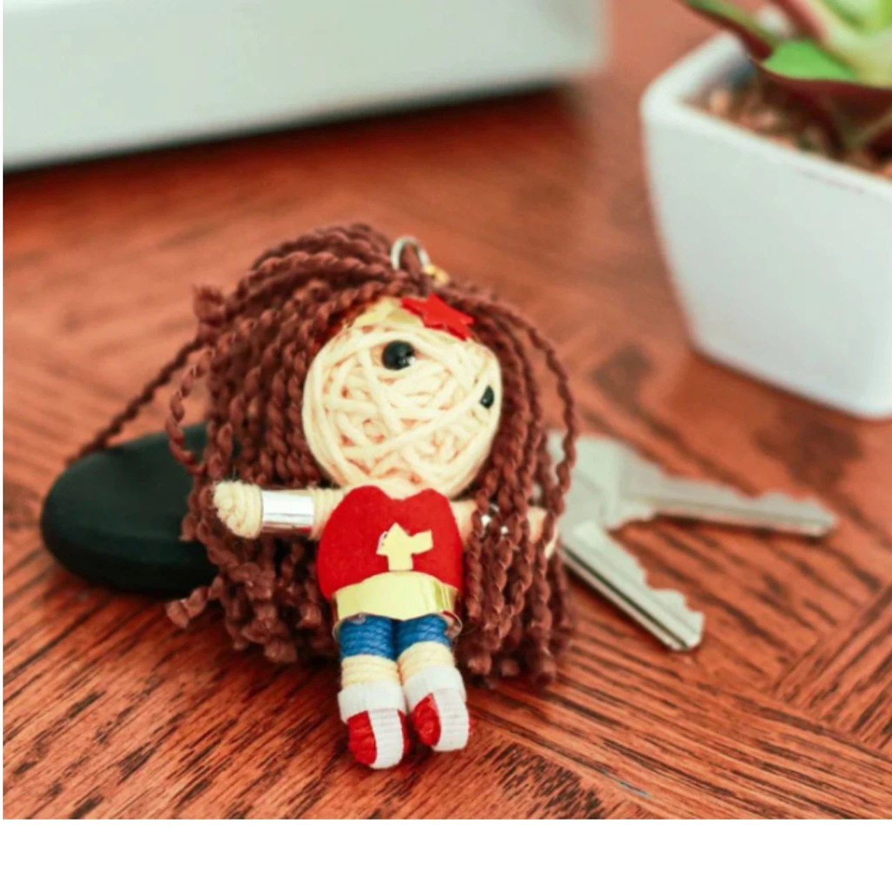 Unleash your inner hero with the Voodoo Doll – Wonder Girl Charm! Handcrafted with detailed red, gold, and blue superhero attire, this charming doll inspires strength, power, and courage. Perfect for keys, bags, or backpacks, it’s a constant reminder to stay strong and conquer any challenge.
