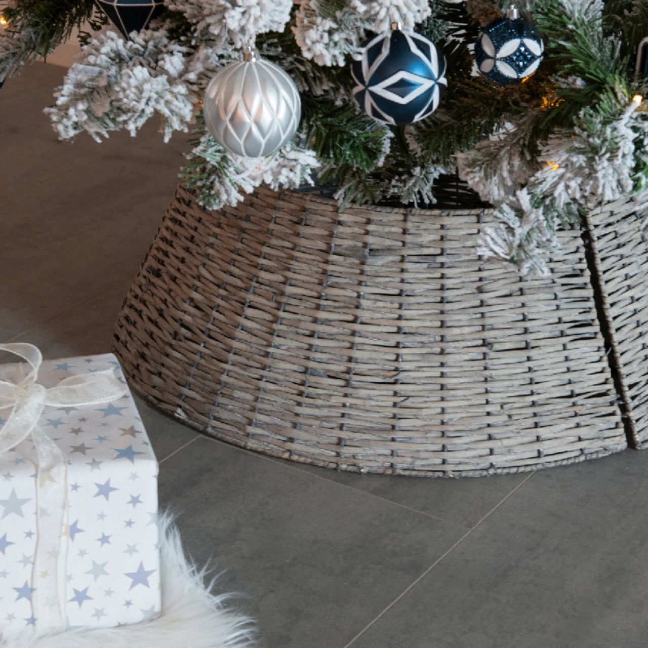 Elevate your holiday décor with our exquisite Willow Tree Christmas Tree Ring, designed to seamlessly blend tradition with modern elegance. Mimicking a woven basket, this stylish tree ring offers a chic alternative to ordinary tree skirts, effortlessly hiding the unsightly base of your Christmas tree. Crafted to accommodate up to an 8-foot tree, it features a generous bottom diameter of 27 inches and stands 11 inches tall, promising a snug and secure fit. Add a touch of rustic charm to your seasonal setup and enjoy a streamlined, polished look that captivates the essence of Christmas.