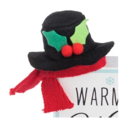 Crafted from sturdy MDF and soft polyester, it’s perfect for adding festive warmth to shelves, mantels, or desks. The bright red scarf and playful holly details create a cheerful holiday vibe. A heartwarming touch to celebrate the season, this sign is sure to spread smiles!