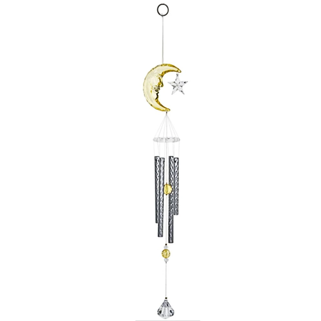 Bring a touch of celestial charm to your garden or patio with this 19″ Yellow Moon Windchime. Featuring a beautifully crafted yellow moon and silver star, this windchime includes shimmering crystals and melodic chimes that create a soothing sound.