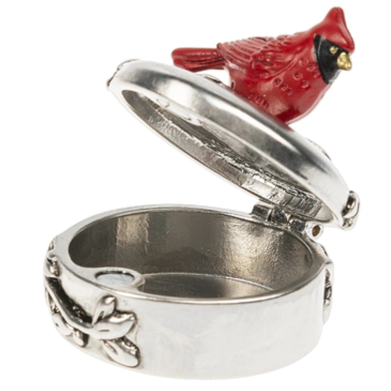 This stunning figurine features a lifelike red cardinal perched on a silver box, symbolizing love and hope. Crafted with high-quality materials, this charming piece is built to last and will make a timeless addition to any home or office.